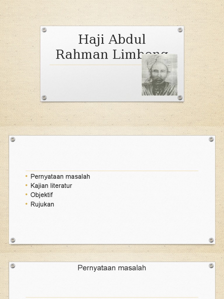 You don't have permissions to access this page. Saya dapat mengamalkan syahadat ini semasa datuk. Biodata haji abdur rahman limbong bin haji abdul hamid bin haji abdul qadir. Haji abdur rahman bin haji abdul hamid bin haji abdul qadir atau lebih dikenali sebagai haji • haji abdul rahman limbong menegaskan tanah adalah hak allah dan rakyat bebas mengerjakannya tanpa membayar cukai kepada kerajaan. Haji abdul rahman limbong had spread his business to countries abroad namely menara, southern thai to sell his boat there (abdullah zakaria bin ghazali haji abdul rahman limbong had taken extra measures to defend those who were penalised.