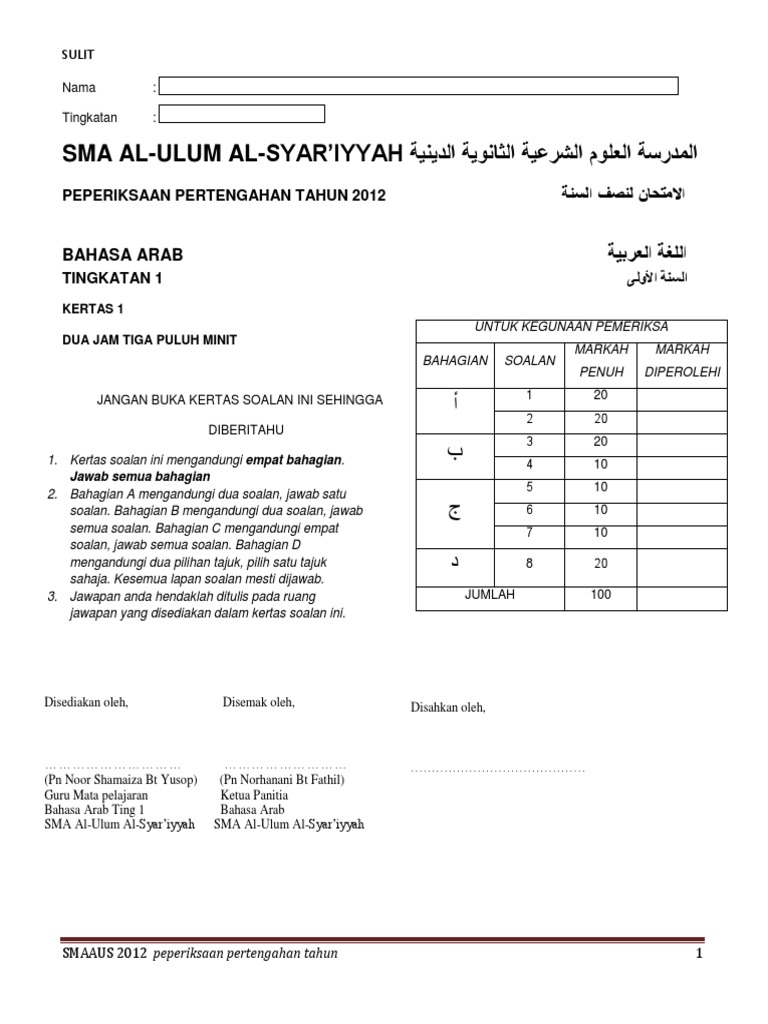 Format dokumen ini adalah dalam 'xlxs' iaitu format fail excel. Soalan ppt bahasa arab kertas 1 tahun 3 2012. Himpunan soalan sains tahun 5 berdasarkan soalan upsr sebenar. Soalan peperiksaan akhir tahun bagi tahun 5 semua subjek via www.sistemguruonline.my. Modul abu related posts to contoh soalan karangan bahasa arab spm.